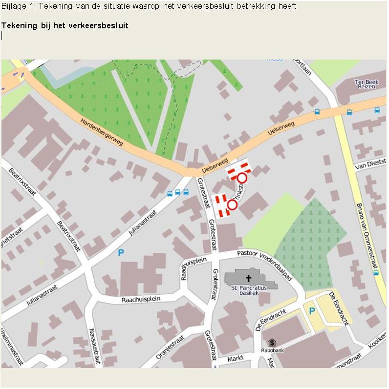 In de bijlage is de situatie te zien waarop het verkeersbesluit betrekking heeft.