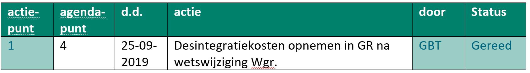 Mevrouw van der Ent benoemd de stand van zaken over de reeds genomen besluiten bij de gemeenten. Van de gemeente Twenterand is nog geen update ontvangen. De heer Koster zorgt ervoor dat dit in de raad komt.