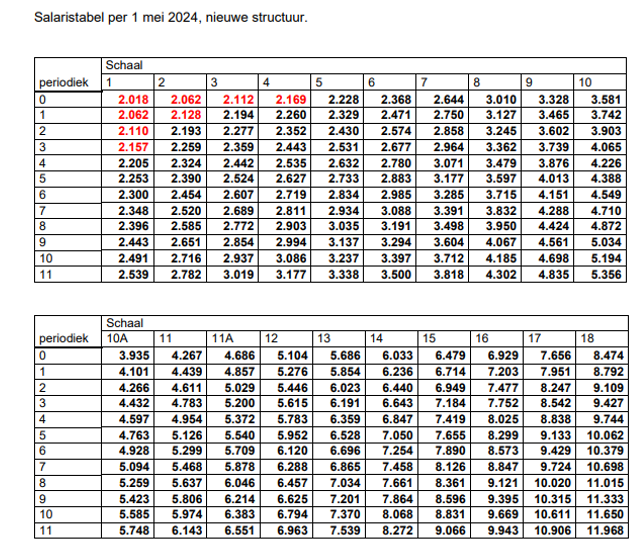 Met ingang van 1 mei 2024 worden de schaalbedragen verhoogd met 6,4%.