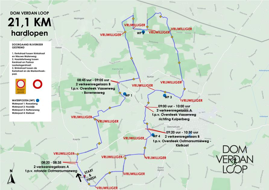 Op deze punten staat ook een vrijwilliger/verkeersregelaar en wordt het dorp indien nodig extra afgezet met rood/wit afzetlint.