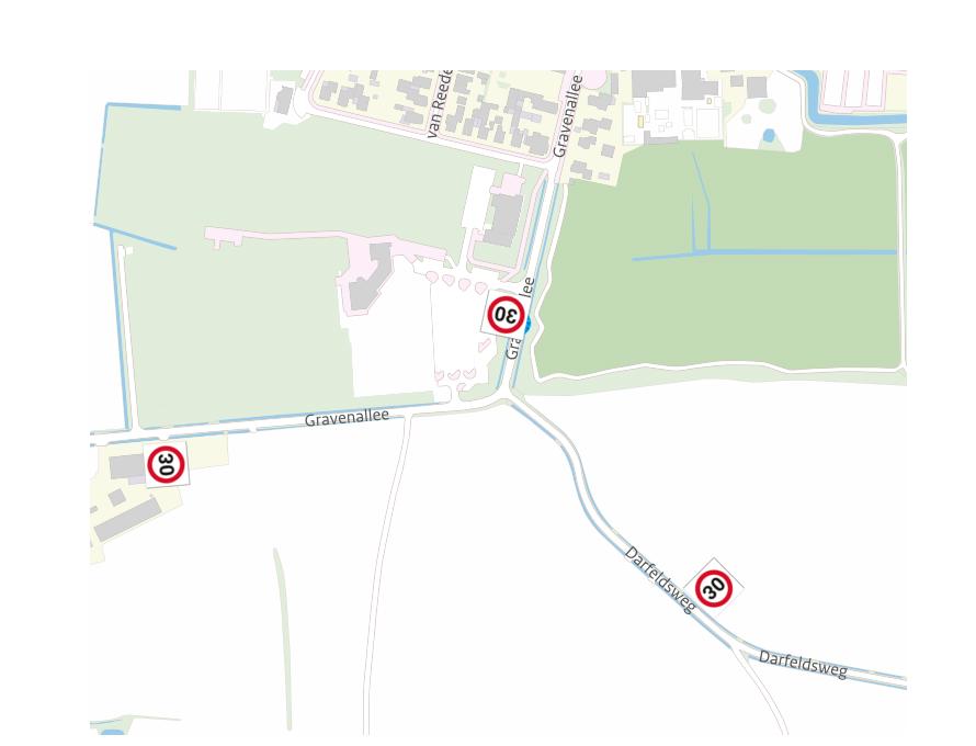 Door plaatsing van de borden A1 (30) uit bijlage I van het Reglement Verkeersregels en