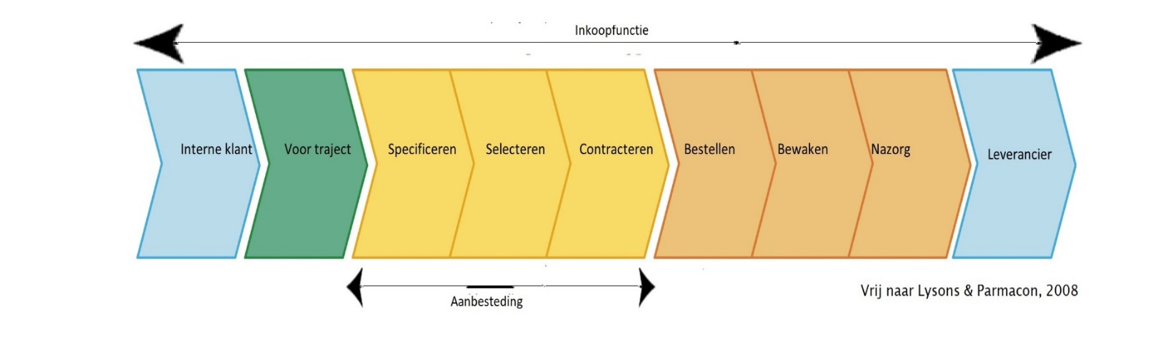 Het inkoopproces bestaat uit verschillende fasen, startend vanaf het voortraject. Het onderstaande plaatje geeft het cyclische inkoopproces weer.