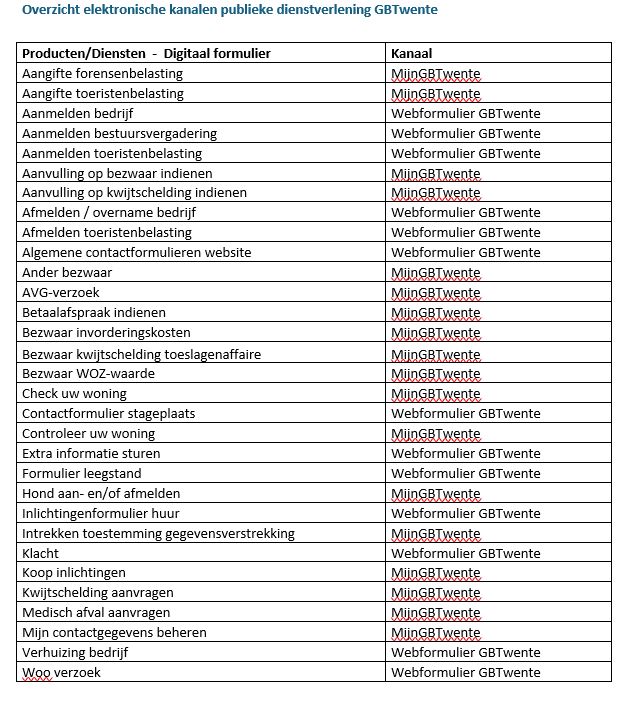 De mogelijkheid om per post met GBTwente te communiceren blijft bestaan.