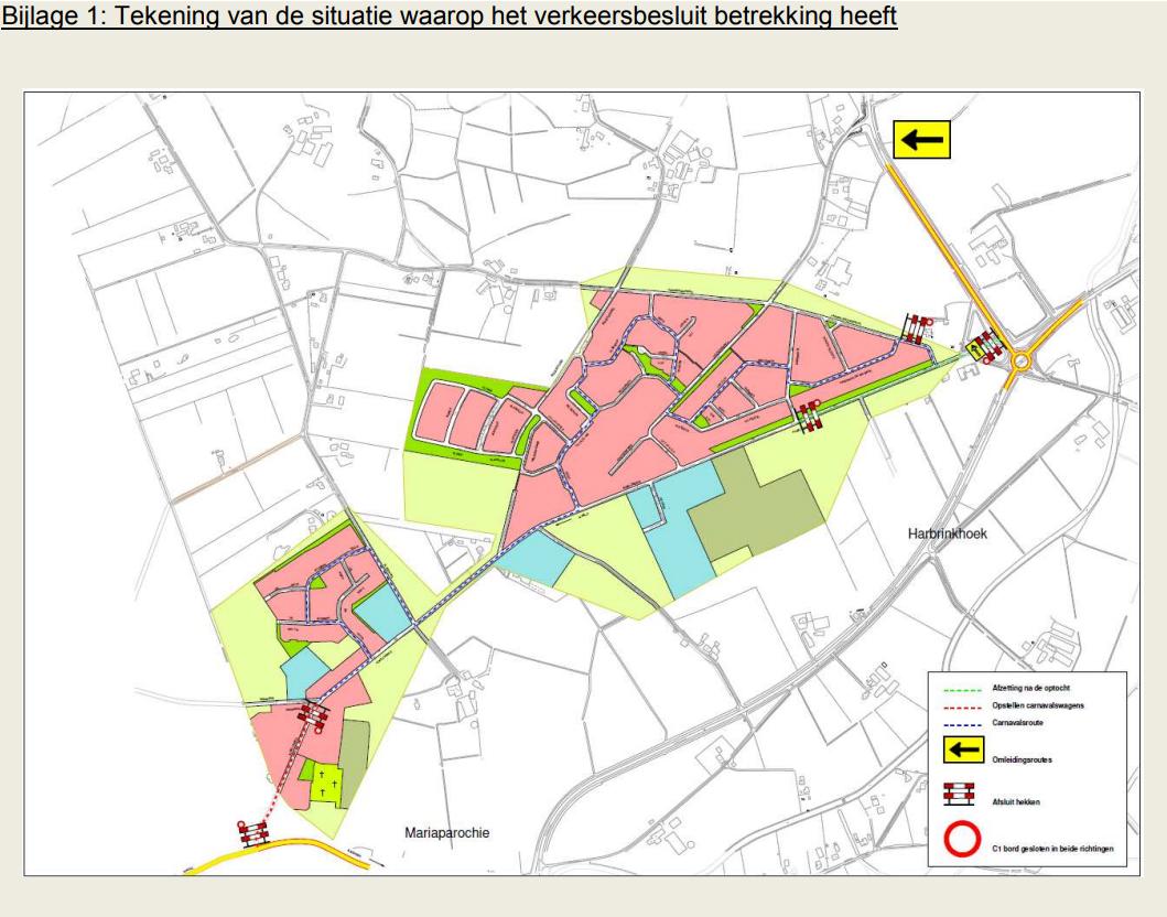 Tijdelijk verkeersbesluit voor houden van een carnavalsoptocht te Harbrinkhoek en Mariaparochie.