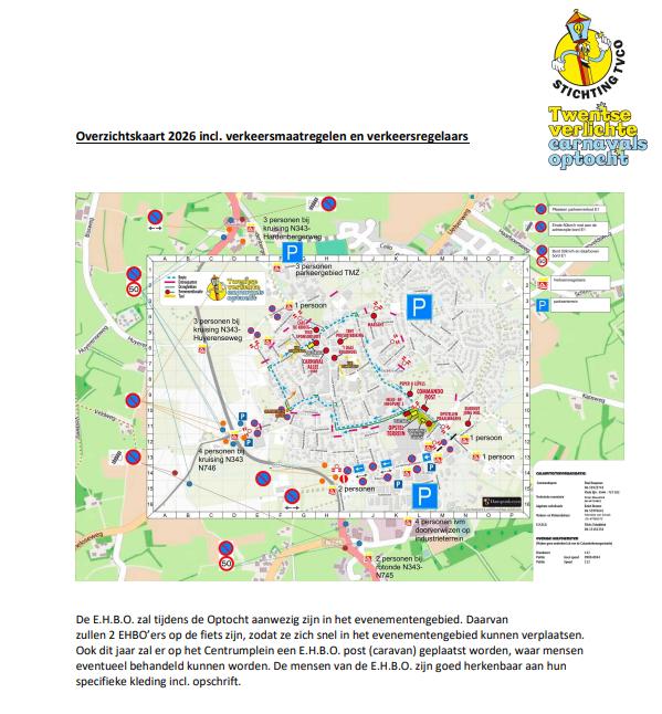 Stichting T.V.C.O. uit Tubbergen heeft vergunning voor het houden van de jaarlijkse verlichte carnavalsoptocht op 13 februari 2026. Daarom vinden wij dat dit evenement de tijdelijke behoefte doet ontstaan om verkeersmaatregelen te treffen.
