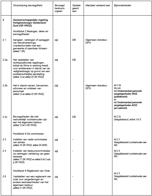| Veiligheidsregio Gelderland-Zuid | Blad gemeenschappelijke regeling 2025, 2749 | delegatie- of mandaatbesluit |