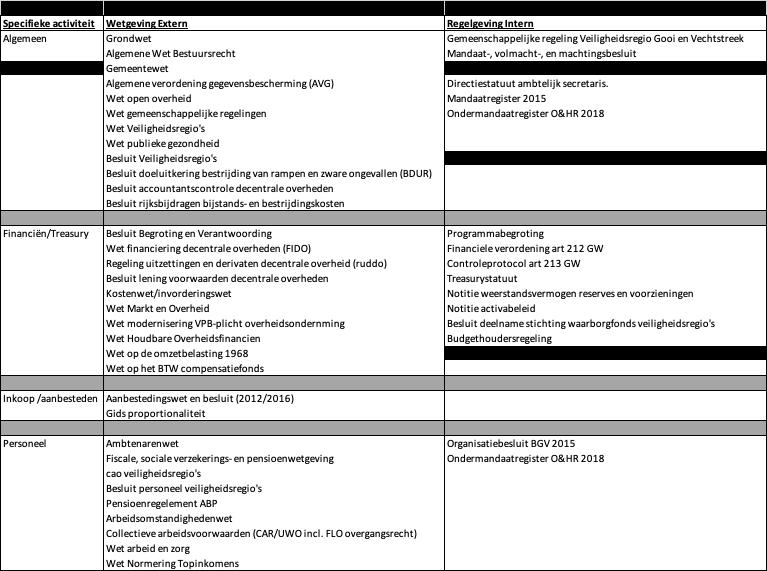 De interne regelgeving, zoals opgenomen in de “Inventarisatie wet- en regelgeving in het kader van de rechtmatigheidscontrole” (bijlage 1 van dit protocol). Dit uitsluitend voor zover deze directe financiële beheerhandelingen betreffen of kunnen betreffen