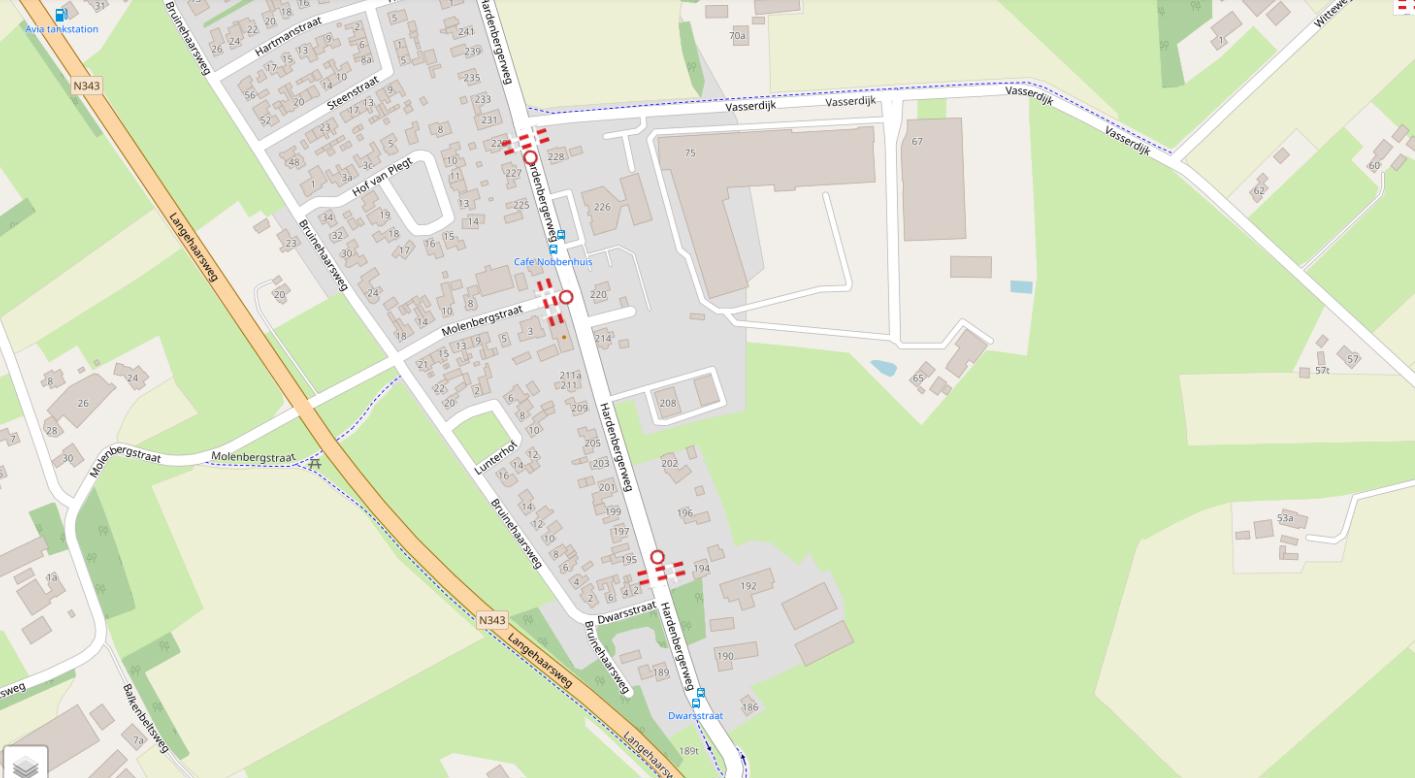 Hardenbergerweg ter hoogte van kruising Molenbergstraat/Hardenbergerweg.