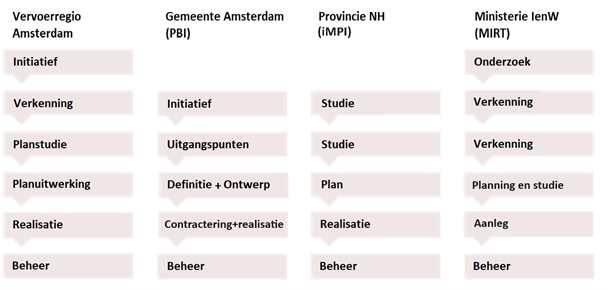De Vervoerregio hanteert een eigen projectfasering met zes fasen:
