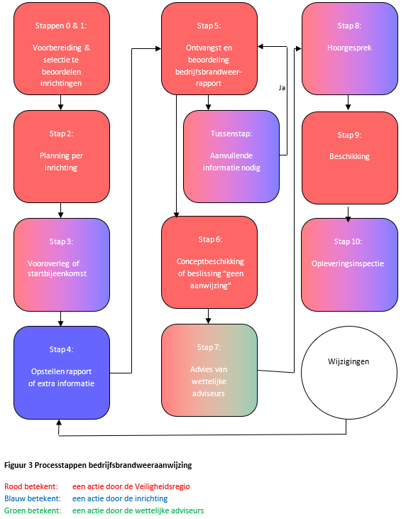 De bedrijfsbrandweeraanwijzing kan pas worden afgegeven na verlening van de omgevingsvergunning milieu. De basis voor de beoordeling van het bedrijfsbrandweerrapport is namelijk de vergunde situatie. Ook als deze situatie afwijkt van de werkelijke situatie – bijvoorbeeld omdat de vergunning activiteiten toestaat die in de praktijk niet plaatsvinden – is de vergunde situatie leidend. Een inrichting kan immers op ieder moment alsnog besluiten deze activiteiten te laten plaatsvinden.