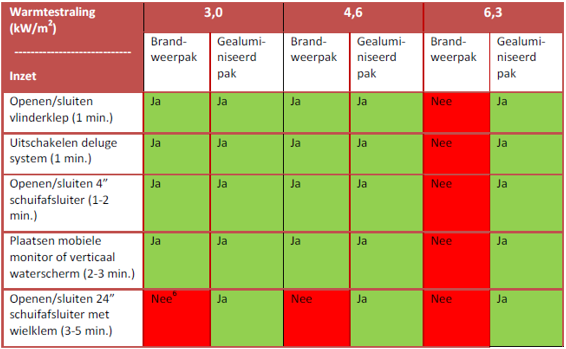 Bovenstaande wordt ondersteund door het onderzoek naar beschermende kleding (TNO, 2009) en is samengevat in de Operationele Handreiking OGS op pag. 215 (NVBR, 2012).