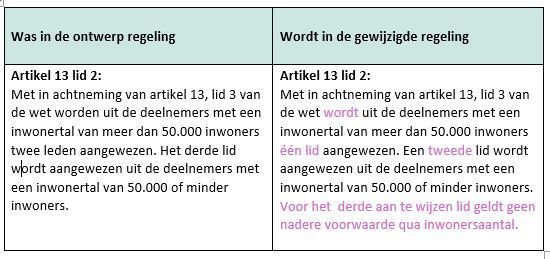 Met in achtneming van artikel 13, lid 3 van de wet wordt uit de deelnemers met een inwonertal van meer dan 50.000 inwoners één lid aangewezen. Een tweede lid wordt aangewezen uit de deelnemers met een inwonertal van 50.000 of minder inwoners. Voor het derde aan te wijzen lid geldt geen nadere voorwaarde qua inwonersaantal.