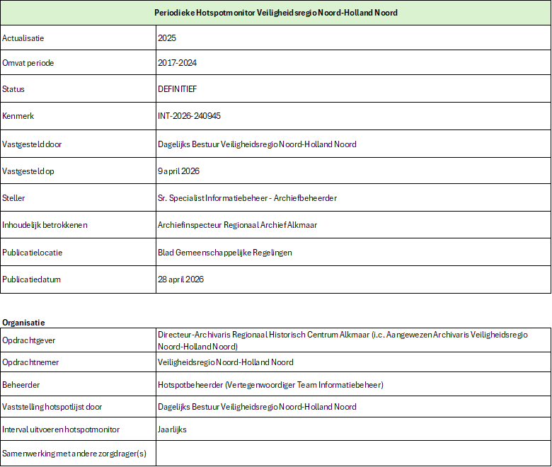 Periodieke Hotspotmonitor Veiligheidsregio Noord-Holland Noord 2025 – Betreffende de periode 2017-2024