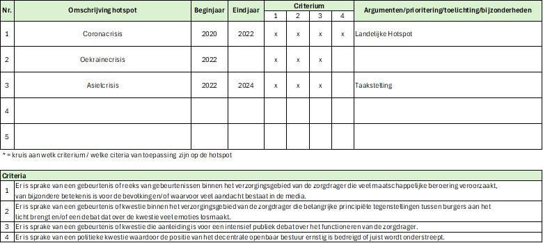 Criteria voor het benoemen van hotspots