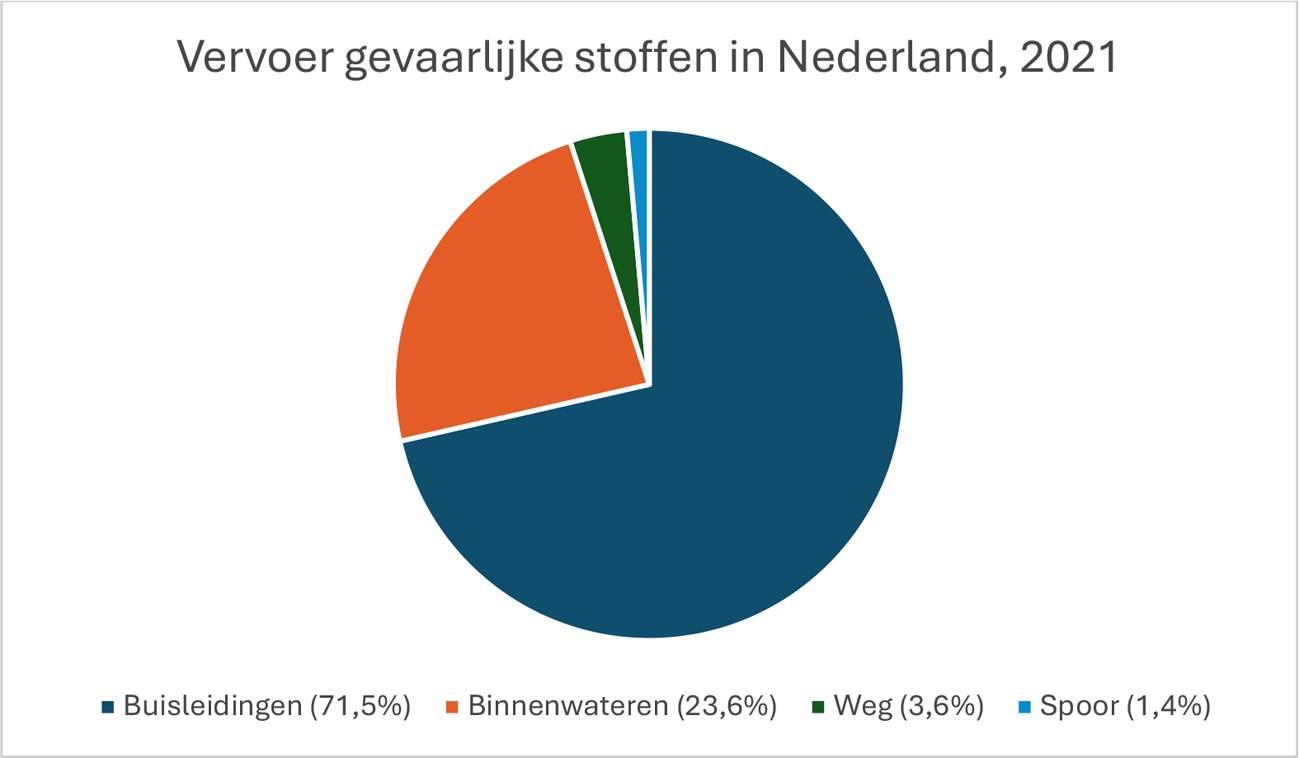 Het vervoer van gevaarlijke stoffen wordt gestuurd door vraag en aanbod. De herkomst en bestemming, de kosten van productie en vervoer, de logistieke capaciteit, en hoeveelheden van de te vervoeren stof hebben grote invloed op de routes en modaliteit waarover het vervoer van deze stoffen plaatsvindt. Ook omdat het vervoer valt onder het vrij verkeer van goederen. Op dit moment is het vervoer van gevaarlijke stoffen in Nederland als volgt verdeeld over de modaliteiten3:
