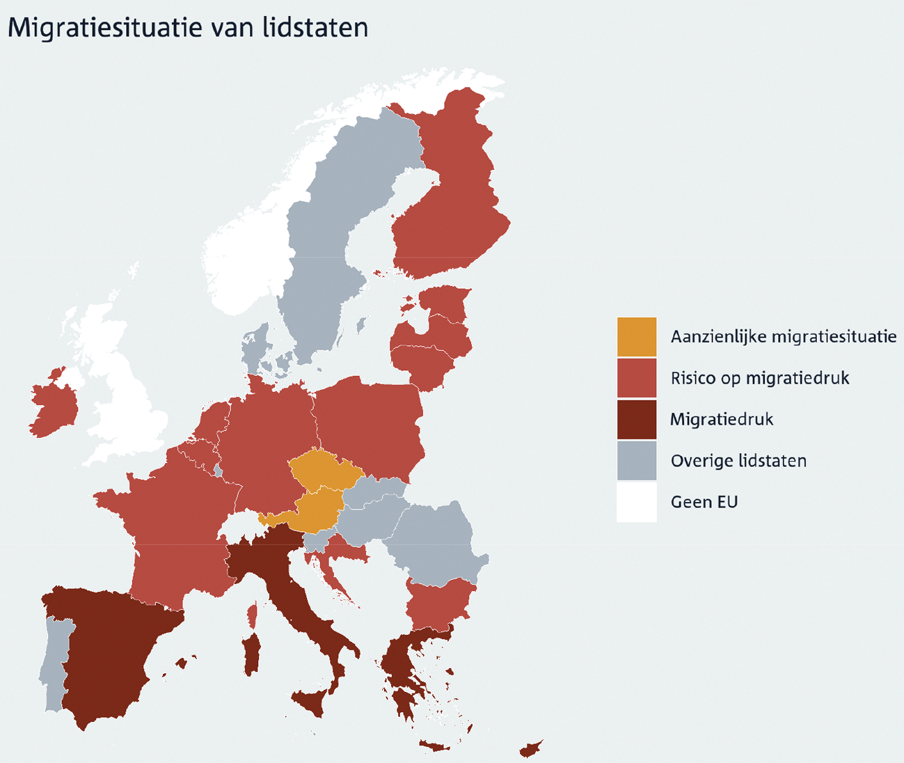 Dat zijn de lidstaten met een significante migratiesituatie. Dat wel zeggen een situatie waarbij het migratiestelsel, over vijf jaar bekeken, de grenzen van zijn capaciteit bereikt. In 2026 zijn dat: Bulgarije, Estland, Kroatië, Oostenrijk, Polen en Tsjechië.