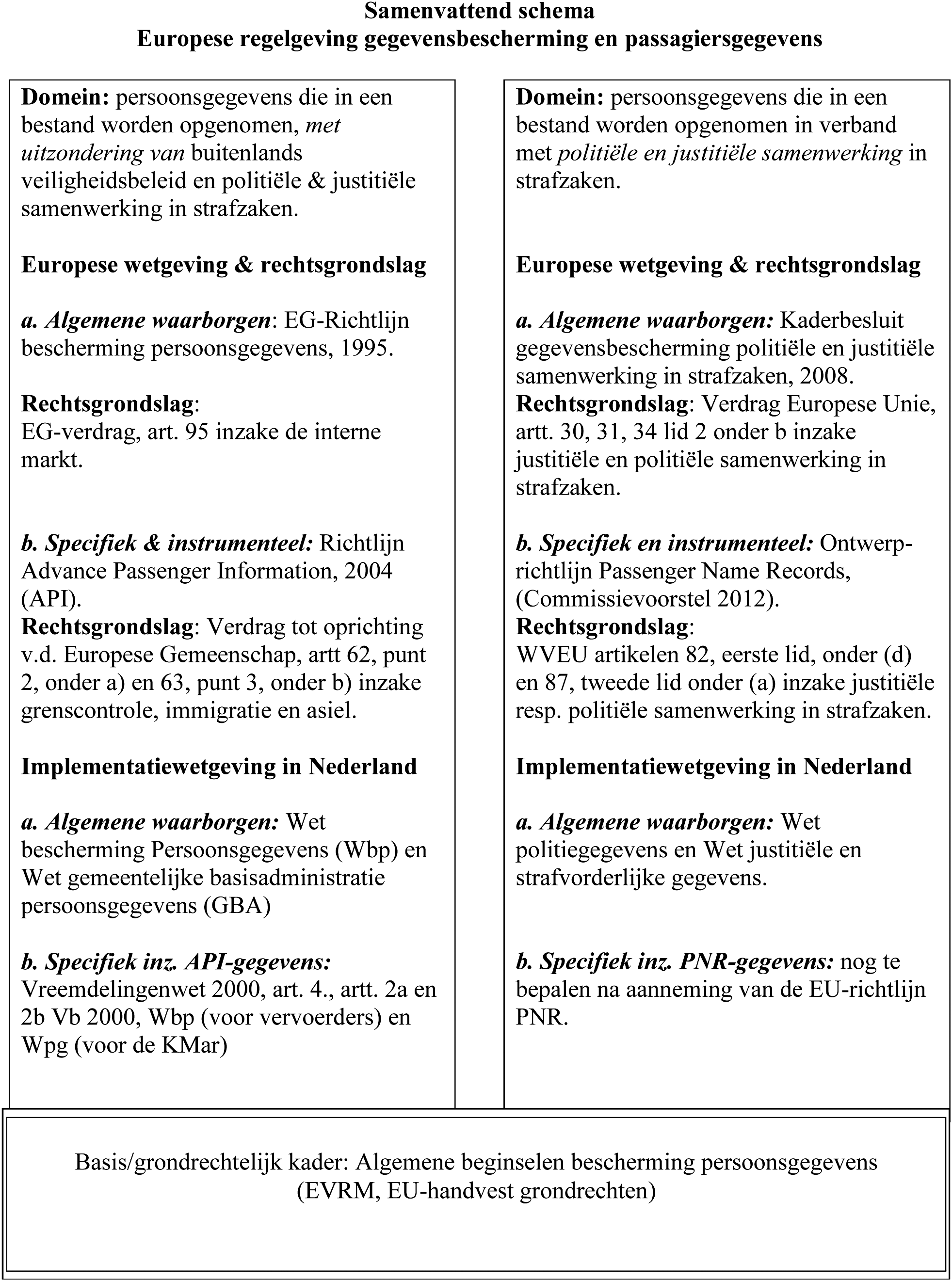 De richtlijn van 1995 en het kaderbesluit van 2008 vormen de twee voetstukken waarop andere, meer specifieke regelingen voortbouwen. Dit geldt ook voor de wetgeving ten aanzien van passagiersgegevens.