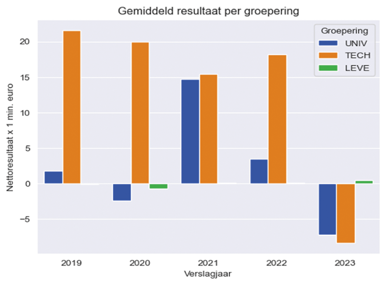 Hieronder staan de begrote en de gerealiseerde resultaten per sector in 2023 (bedragen in € mln.)6