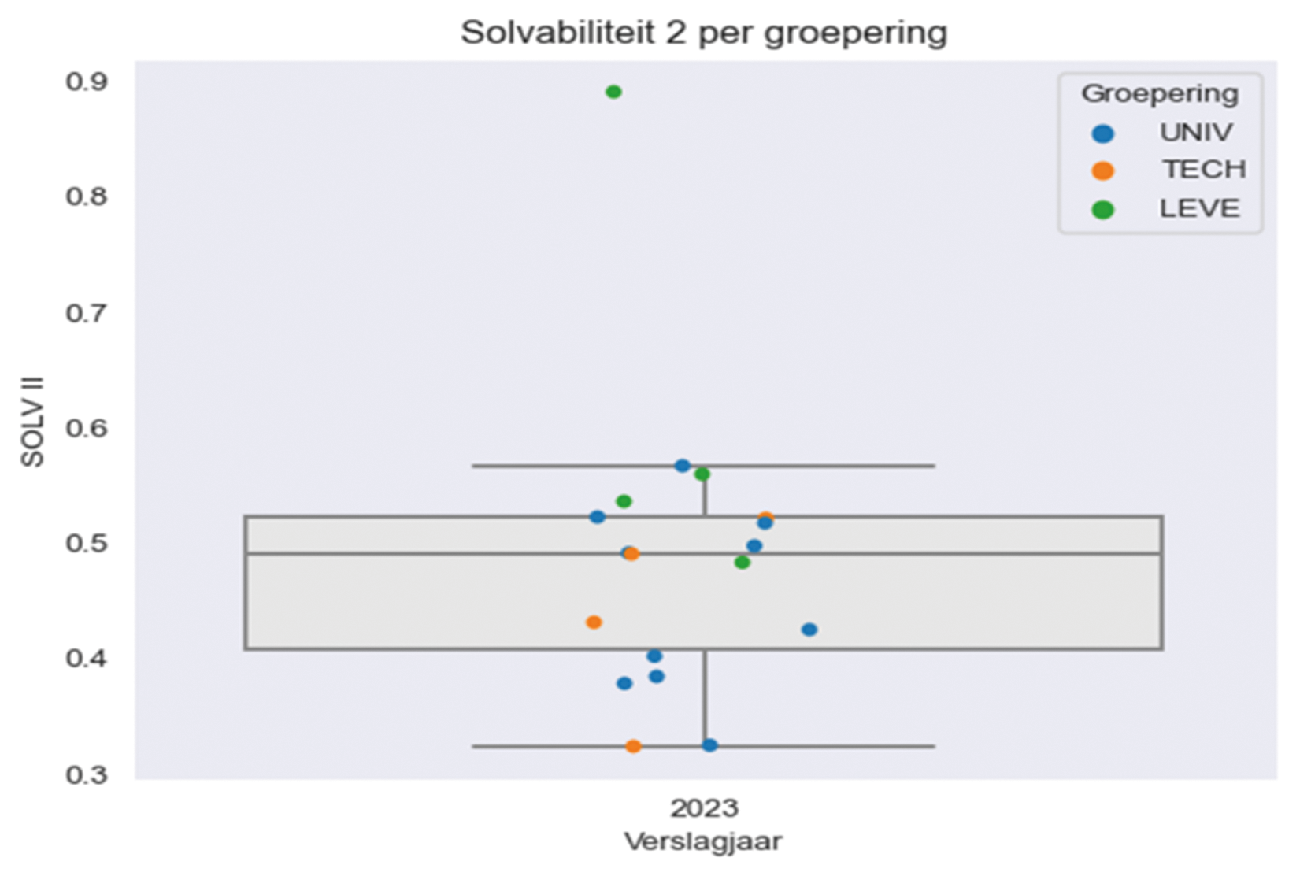In onderstaande grafieken wordt de liquiditeit en solvabiliteit per instelling weergegeven eind 2023.