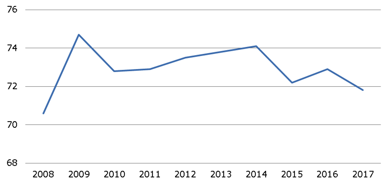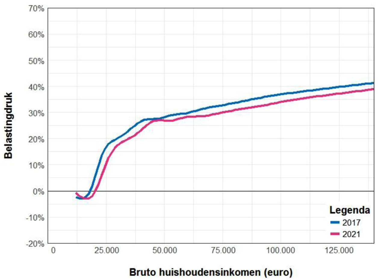 De totale belasting- en premieontvangsten zoals gerapporteerd in het Financieel Jaarverslag van het Rijk zijn opgelopen van 222 miljard euro in 2008 naar 271 miljard euro in 2017. In percentage BBP is sprake van een afname van 0,3 procentpunt.
