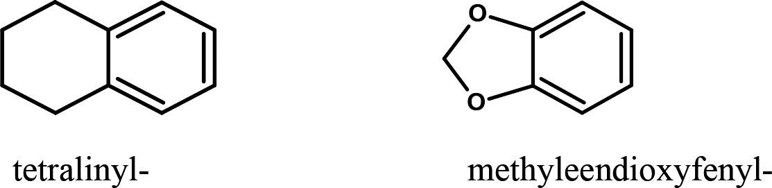 fenyl-, naftyl-, tetralinyl-, methyleendioxyfenyl-, ethyleendioxyfenyl-, furyl-, pyrrolyl-, thiënyl-, pyridyl-, benzofuranyl-, dihydrobenzofuranyl-, indanyl-, indenyl-, tetrahydrobenzodifuranyl-, benzodifuranyl-, tetrahydrobenzodipyranyl-, cyclopentyl-, cyclohexyl-