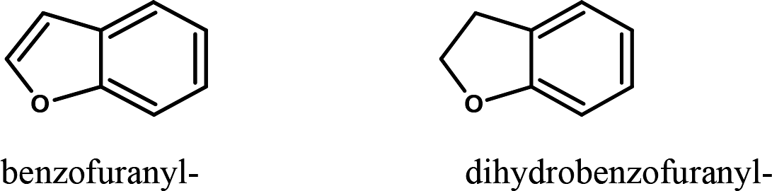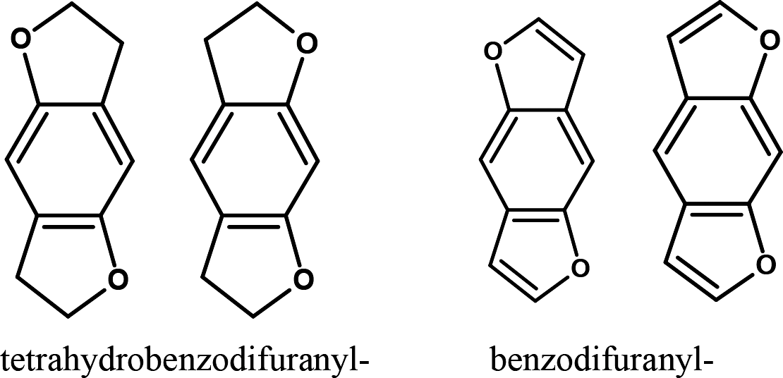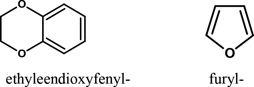 De boven beschreven atoomgroepen kunnen ook nog gesubstitueerd zijn met elke chemisch mogelijke combinatie van koolstof, waterstof, stikstof, zuurstof, zwavel, fluor, chloor, broom of jood. De op deze wijze verkregen substituenten kunnen een ononderbroken keten hebben van niet meer dan 8 atomen (de waterstofatomen niet meegerekend). Atomen uit de ringstructuur tellen niet mee.