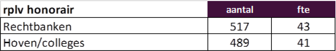 Daarnaast zijn er de zgn. honoraire rechter- en raadsherenplaatsvervangers. Deze hebben geen aanwijzing voor een vast aantal uren per maand, maar zijn oproepbaar voor een zitting. Voor 2024 gaat het om de volgende aantallen: