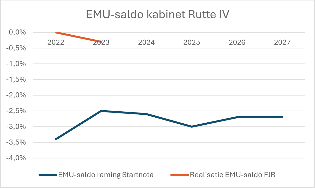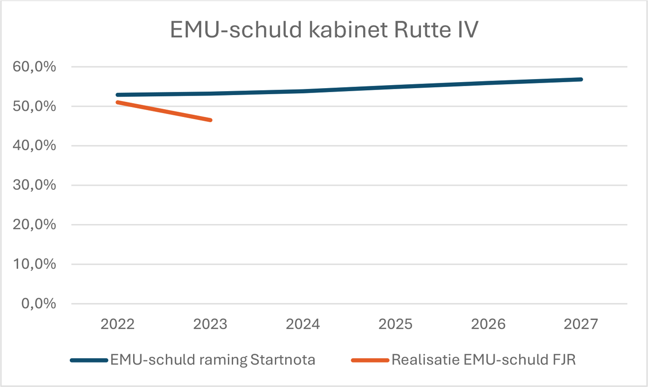 Bij kabinet-Rutte IV is bij Voorjaarsnota 2022 het EMU-saldo en de EMU-schuld definitief vastgesteld en zijn de jaren 2022 t/m 2027 opgenomen in bovenstaande tabel.
