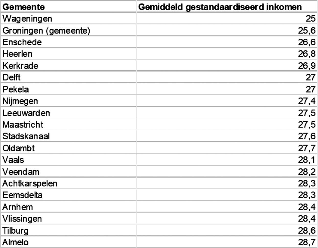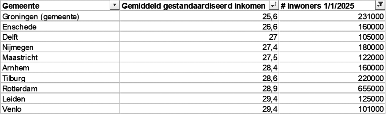 Aangezien er slechts 26 gemeenten in Nederland zijn met meer dan 100.000 inwoners, is ervoor gekozen de top 10 te selecteren om een vergelijk te kunnen maken.
