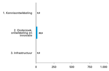 Figuur 1 Gerealiseerde uitgaven verdeeld over beleidsartikelen (x € 1 mln). Totaal € 20,9 mln.
