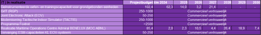 – Tot slot gaat Defensie verder met verschillende simulatie projecten, zodat gereedstellingstrajecten efficiënter worden uitgevoerd. De ambitie is om de link tussen operationele systemen en simulatie capaciteit in 2026 verder te versterken. Op het gebied van tactische datalinks blijft IT daarnaast een belangrijke rol spelen, zoals bij de verwerving van de C-390, de Caracal helikopter en de vervanging van schepen.