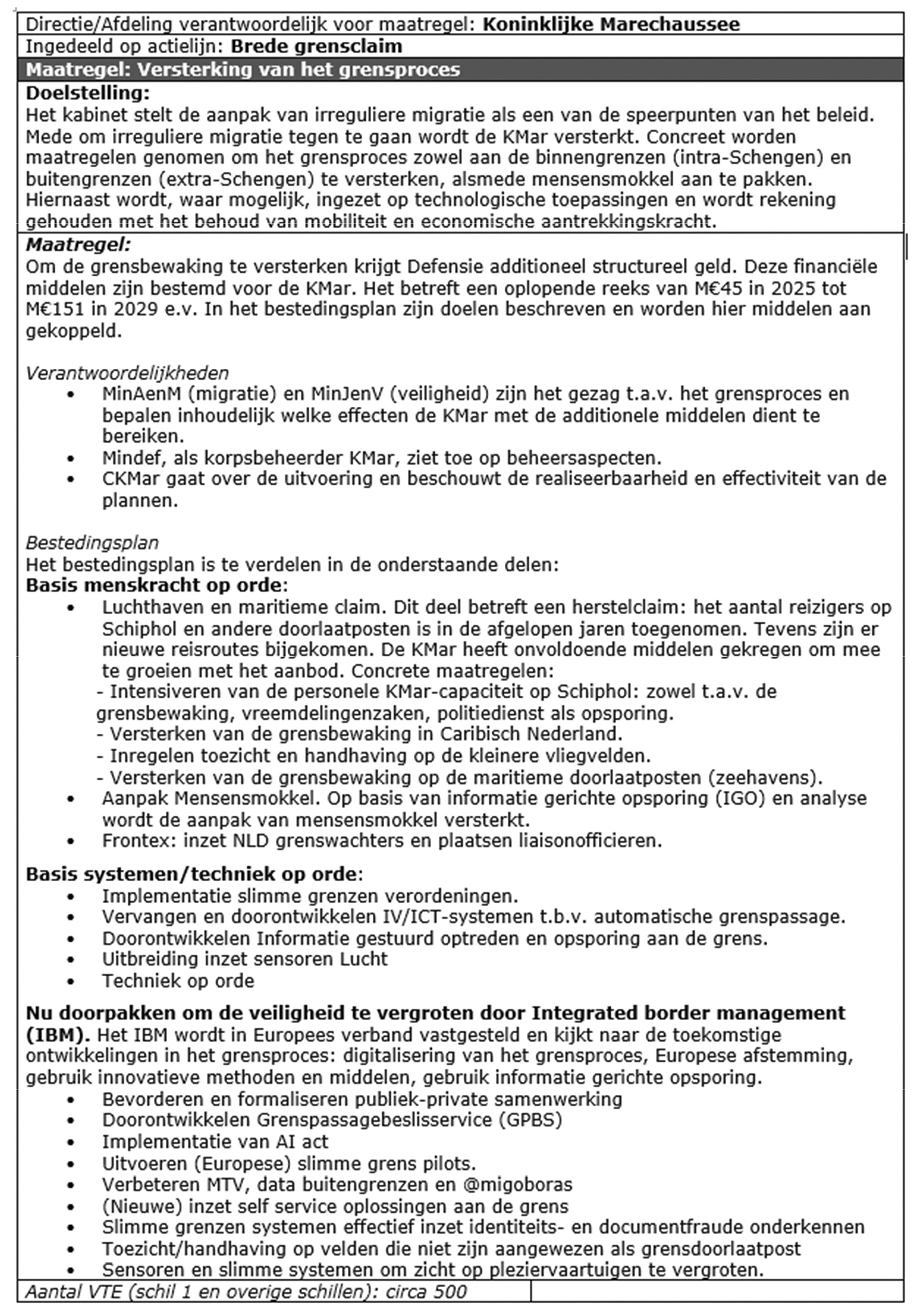 Middels de SBS wordt de kamer geinformeerd over de beleidskeuzes KMar Grensbewaking en ophoging SecFund. Het CW 3.1 kader voor de steun aan Oekraine volgt via de periodieke leveringenbrief die uiterlijk september wordt verstuurd aan de kamer. Het kader voor Middelen Nationale Veiligheid MIVD is vertrouwelijk en wordt daardoor niet openbaar gemaakt. Dit volgt via de bekende procedure.
