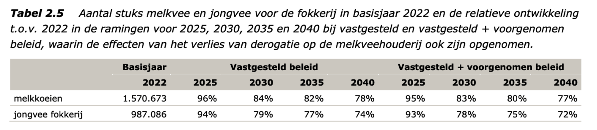https://edepot.wur.nl/683369, Wageningen UR, «Raming van luchtemissies uit de landbouw in 2030 en 2035, met doorkijk naar 2040», dec 2024.