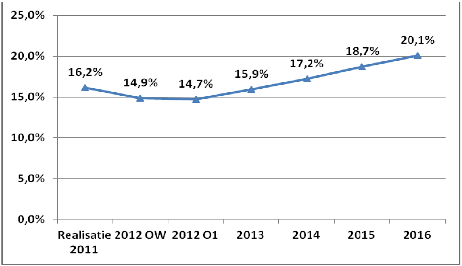 De ontwikkeling van de investeringsquote ziet er meerjarig als volgt uit: