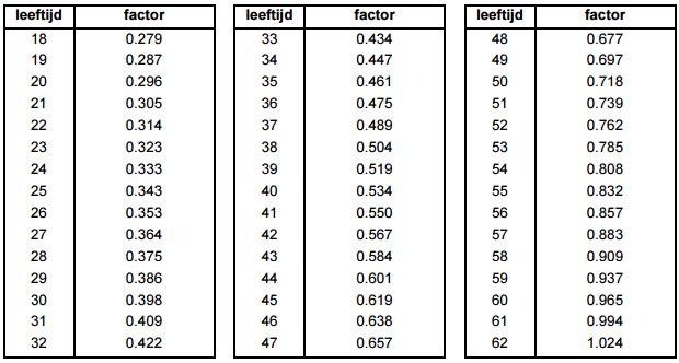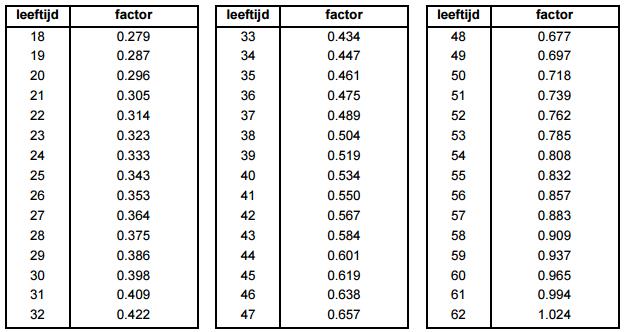 2 De leeftijdsafhankelijke factor bedraagt