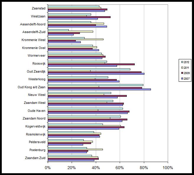 Afbeelding 3 .1 Vaak of soms last van geur van bedrijven (Zaanpeiling 2007-2012) 3