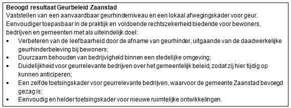 Het Zaans geurbeleid is gericht op het op termijn behalen van de streefkwaliteit.