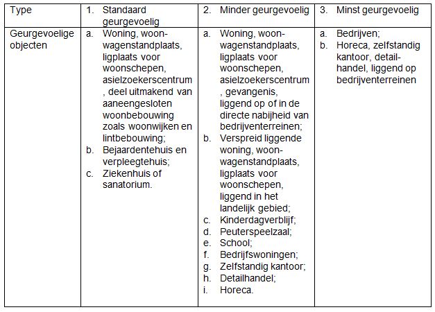 Deze onderverdeling van geurgevoelige objecten* in type 1, 2, of 3 is hierna verder uitgewerkt.