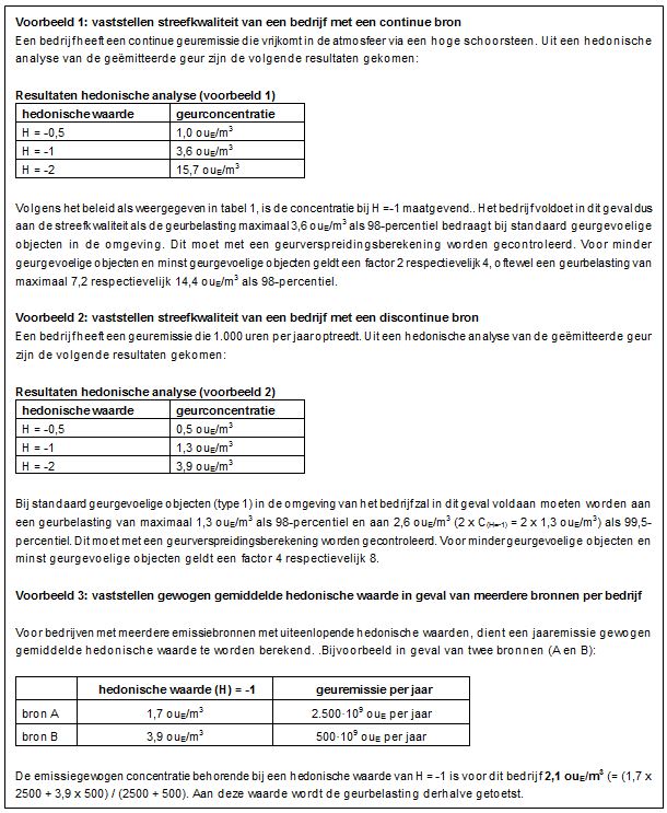 b) Bedoeld wordt de (uurgemiddelde) geurconcentratie (in ouE/m3) behorende bij een hedonische waarde van -1. Indien deze niet bekend is, geldt een toetsingswaarde van 1 ouE/m3. Bij meerdere bronnen in een bedrijf wordt de hedonische waarde bepaald door emissie en middeling van de hedonische waardes van de verschillende bronnen.