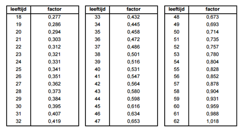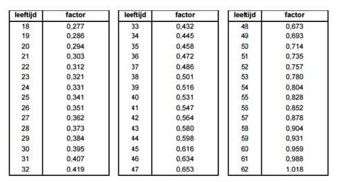 • 2. De leeftijdsafhankelijke factor bedraagt