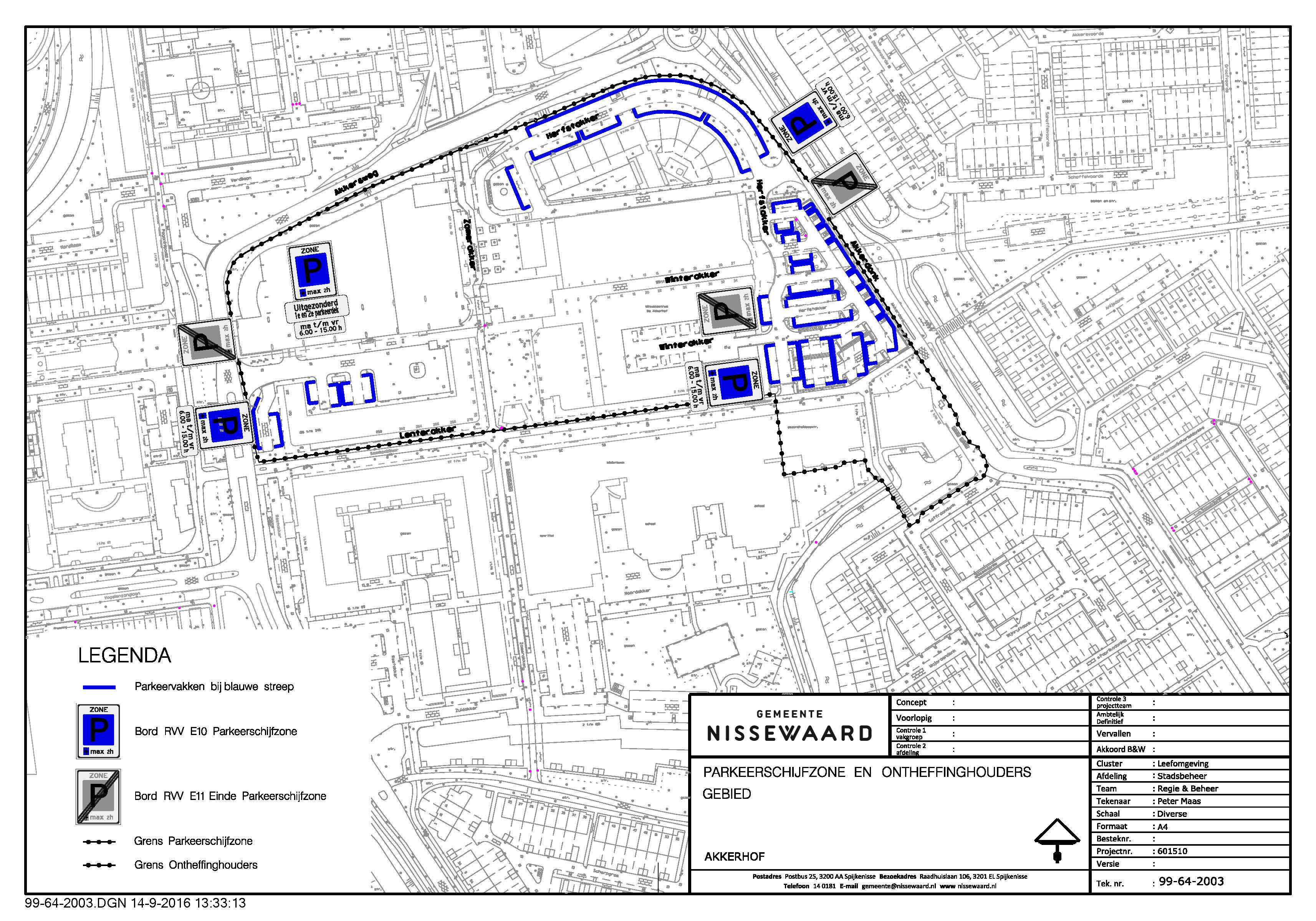 Parkeerschijf-zone en ontheffinghoudersgebied Akkerhof, tekening nummer 99-64-2003;