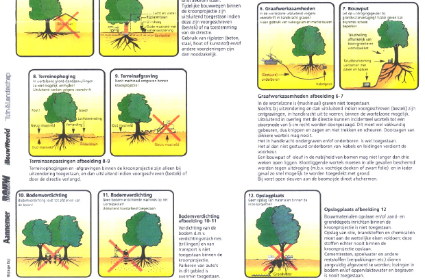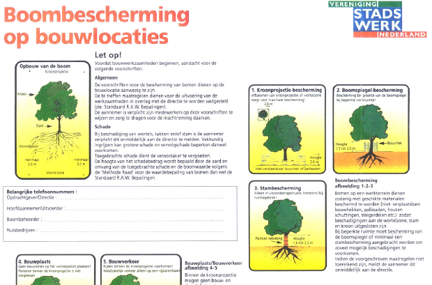 In deze gevallen zullen al vóór het verstrekken van het instemmingsbesluit specifieke afspraken worden vastgelegd. Afhankelijk van de omvang van het werk kan in de voorwaarden "het 1e jaaronderhoud groen" en "inboet beplanting na het 1e groeiseizoen" worden voorgeschreven. De schade aan bomen wordt vastgesteld op basis van de Richtlijnen NVTB (Nederlandse Vereniging van Taxateurs van Bomen).