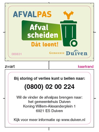 Voor toegang tot het Afvalaanbiedstation is de aanbieder verplicht zich te legitimeren met de door de gemeente verstrekte Afvalpas (overeenkomstig bijlage 1 bij dit Acceptatiebeleid).