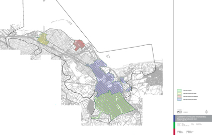 C-zone: het gedeelte van de bebouwde kom dat door zijn ligging een bovenlokale functie vervult en in het centrumgebied naar gelang van bewoningsgraad en bewoningsdichtheid nader is in te delen in straten met: