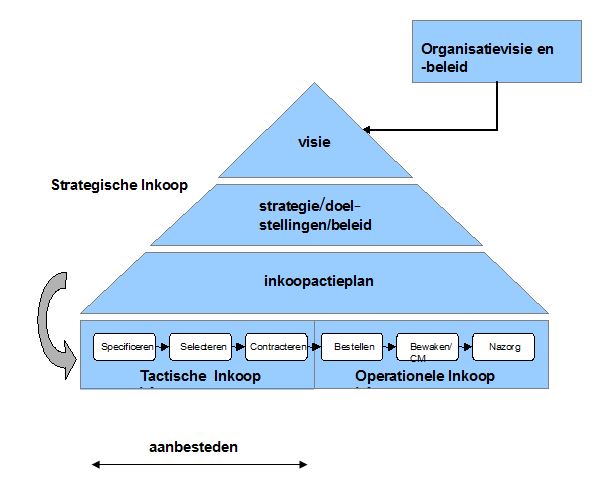 De inkoopfunctie wordt gedefinieerd als ‘Het geheel van activiteiten die in organisaties wordt vervuld om producten (leveringen, diensten en werken) van externe bronnen te betrekken tegen de voor de gemeente meest gunstige voorwaarden’. De inkoopfunctie bestaat uit een strategisch, tactisch en een operationeel proces. Deze inkoopfunctie wordt gevisualiseerd in onderstaande figuur: