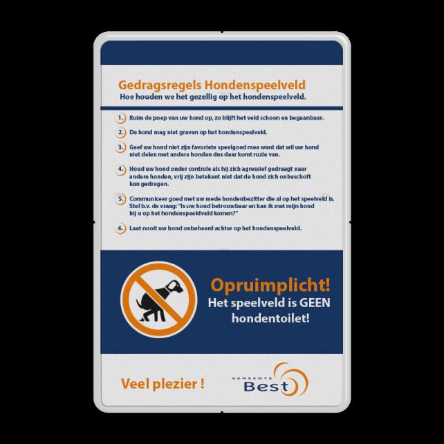 Bijlage 1: Locatie hondenspeelveld en voorbeeld bord met gedragsregels