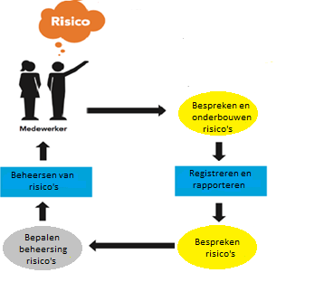 De taken en verantwoordelijkheden van de betrokken actoren inzake risicomanagement zijn in dit hoofdstuk uiteengezet. Dit leidt tot een proces zoals hieronder vereenvoudigd afgebeeld.