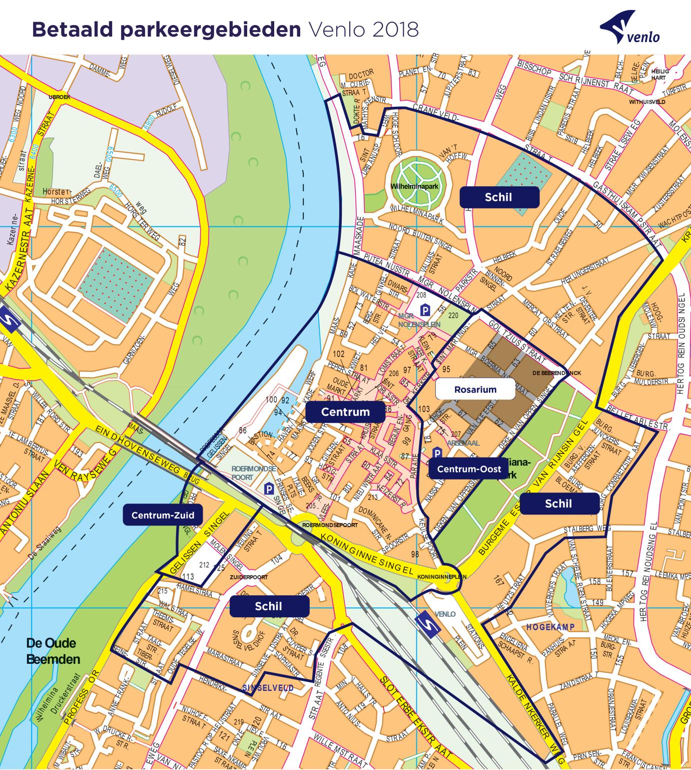 Gebiedsomschrijvingen 2018 en plattegrond “Betaald parkeergebieden Venlo 2018” |