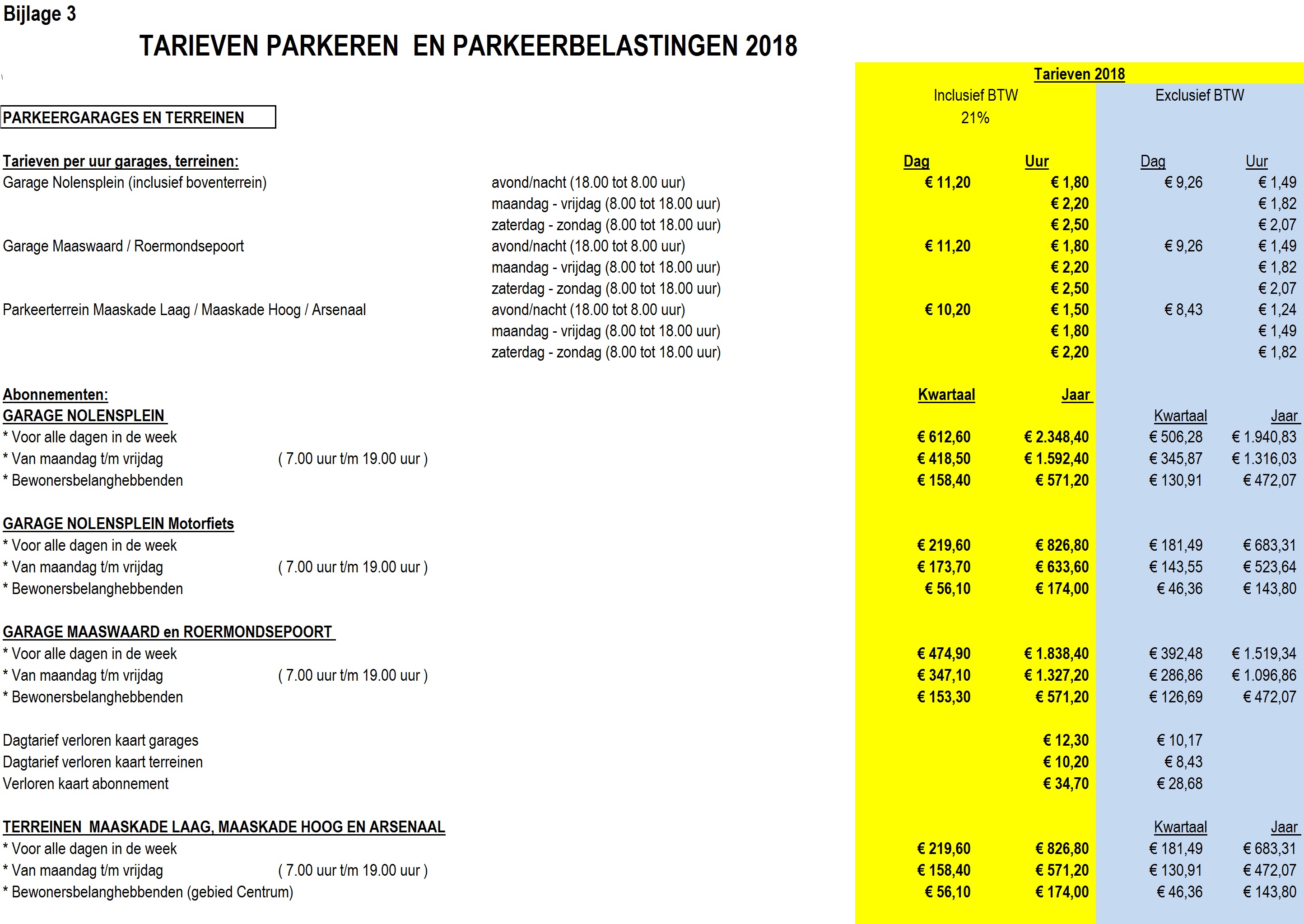 Bijlagen verordening parkeerbelastingen 2018