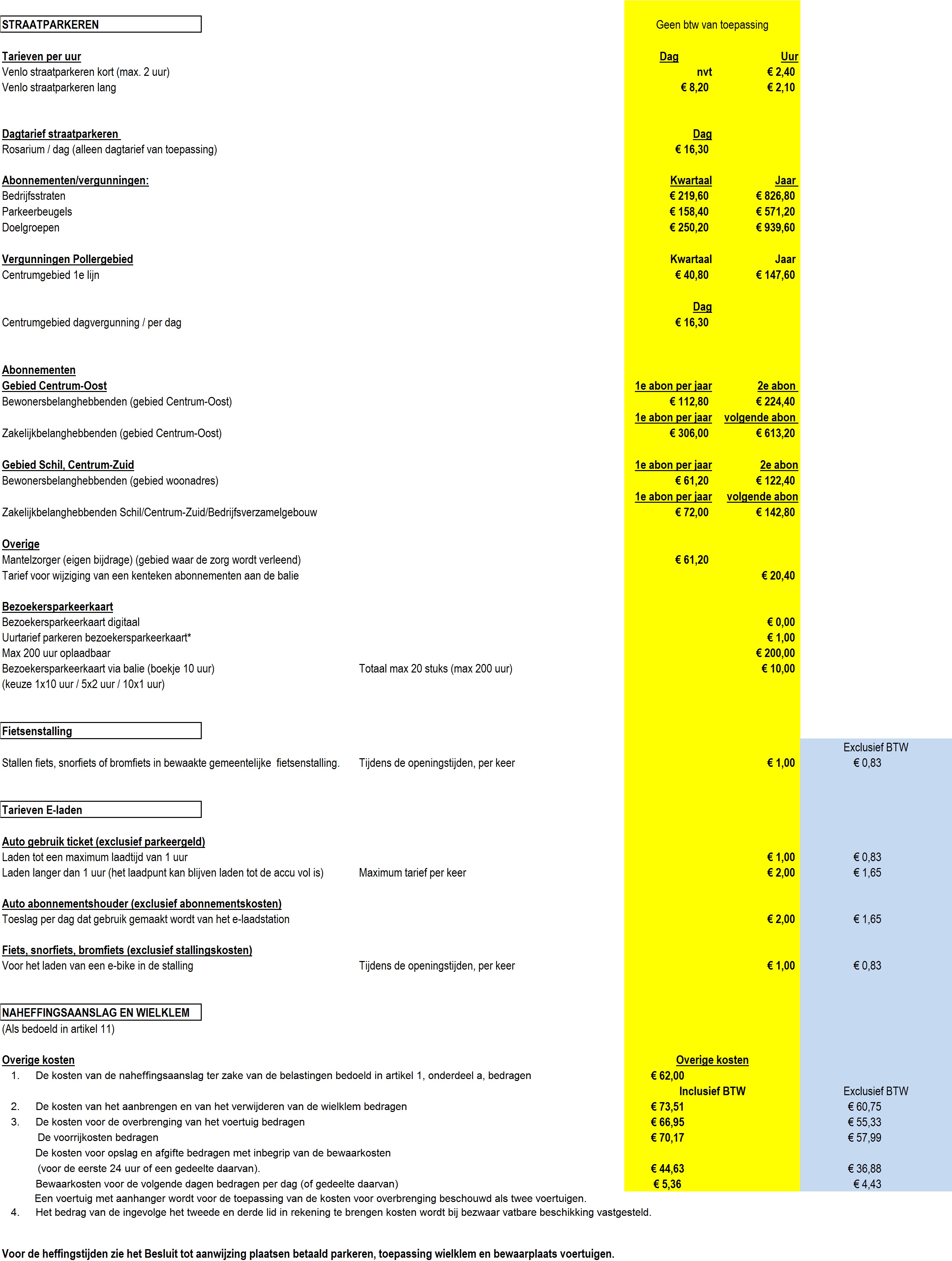 Berekening kosten naheffingsaanslag en aanbrengen en verwijderen wielklem 2018 |